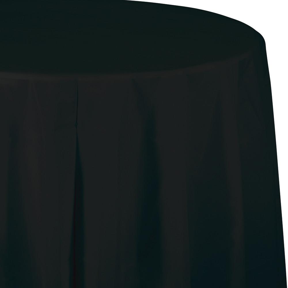 Jet Black Plastic Round Tablecover 2.1m Each | Online Party Store | Jet Black Solid Colour Plastic Tableware