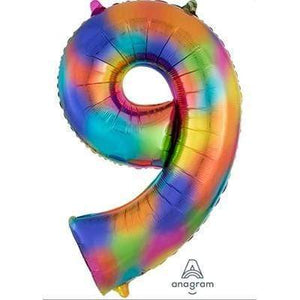 Rainbow Splash Numeral 9 Supershape Foil Balloon 86cm Each | Online Party Store | Numbers Foil Balloons